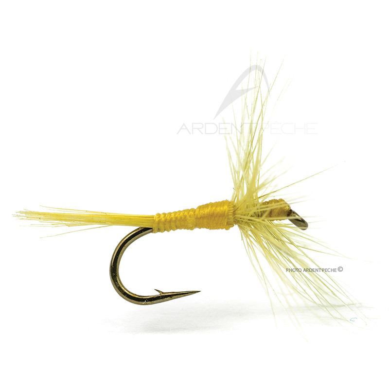 Imitation d'éphémère unicolore.Le montage de la collerette de coq en hackle avancé caractéristique se positionne bien sur l'eau et participe au réalisme du modèle.Excellente imitation de Sulphure.
