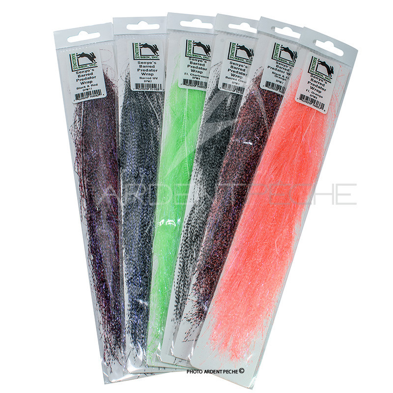 Jupes composées de fibres de 9.5 cm de long environ, cousues sur une petite tresse très fine perpendiculairement. Excellentes fibres pour les mouches mer et les mouches à brochet.- Sachet de 4 jupes de 17 cm environ.