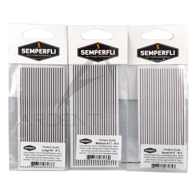 Un des meilleurs matériaux pour faire le corps de vos mouches. Bandes ultras fines transparentes avec un liseré noir en forme de fusau. Finition parfaite avec une résine UV très fine SOLAREZ ref 27264. - Pochettes de 20 bandes - Large : pour hameçons de 8 à 12 - Medium : pour hameçons de 12 à 16 - Small : pour hameçons de 16 à 22