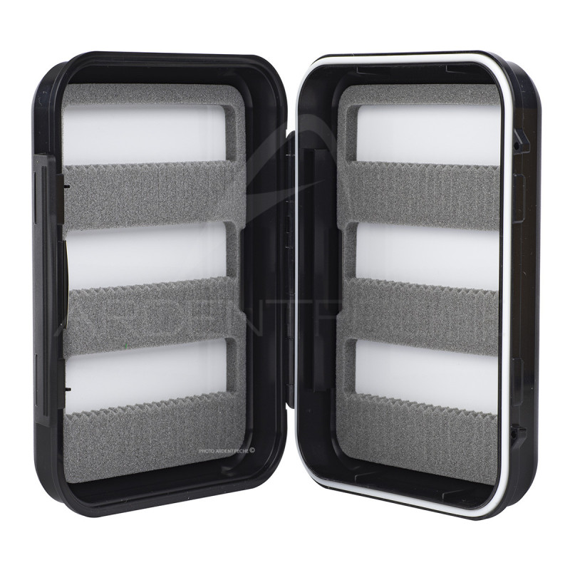 Modèle conçu pour contenir des grosses nymphes, streamers comme des zonkers ou des stichs. Les longues fentes de mousses permettent de régler le positionnement de la mouche en faisant glisser la pointe de l'hameçon. - Dimension : 130 X 104 X 36 mm- Contenance environ 120 mouches- Plaques mousses amovibles- Boite étanche