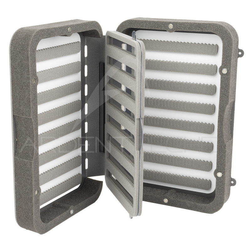 Boite super légère pour une grande quantité de petites mouches. Dimensions : 15.9 x 10.4 x 3.7 cmPoids : 67gDisponible en 3 tailles :Grande taille : 10 rangées x 4 facesTaille moyenne : 8 rangées x 4 facesPetite taille : 7 rangées x 4 faces
