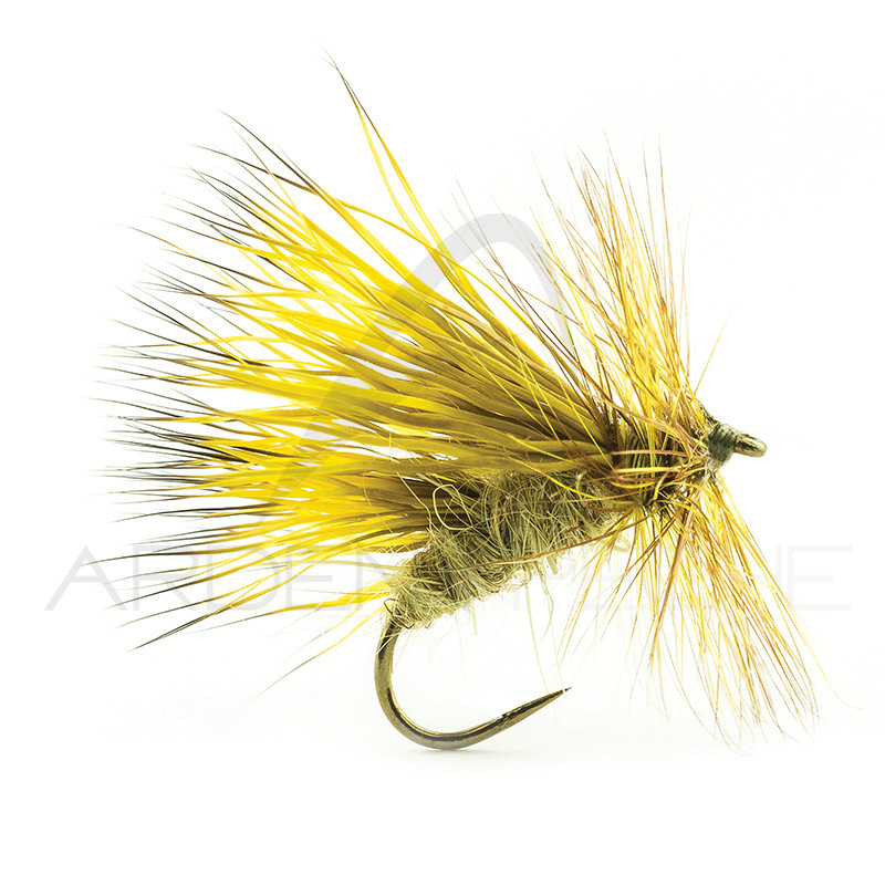 Le montage de la collerette de coq en hackle avancé caractéristique se positionne bien sur l'eau et participe au réalisme du modèle.