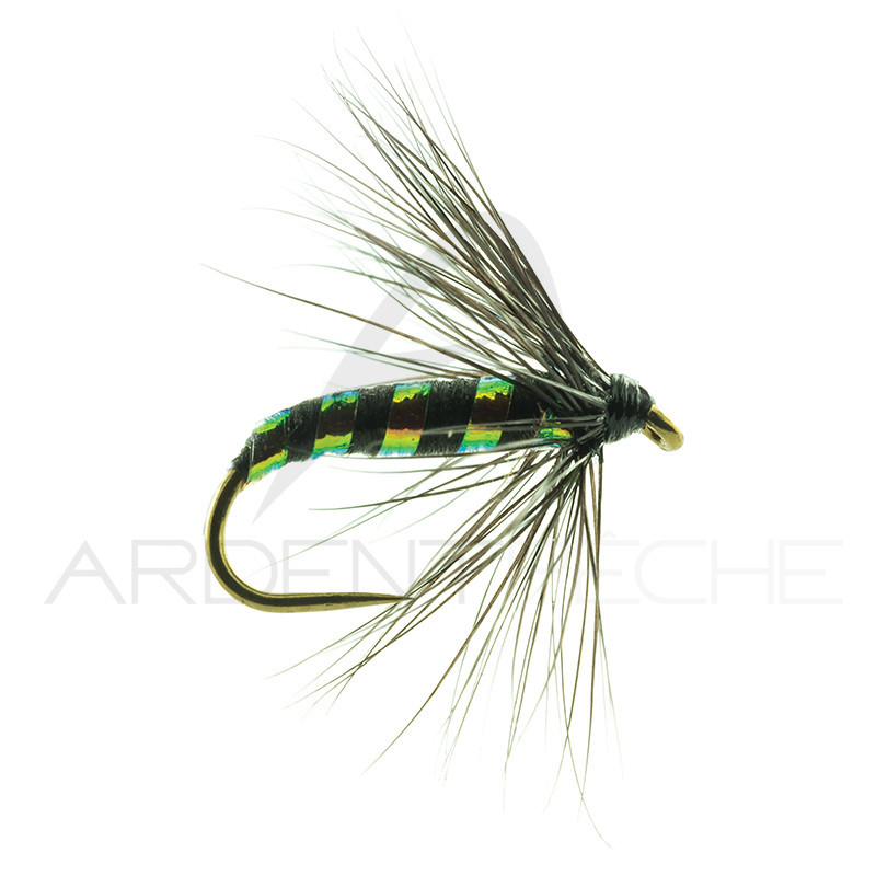 Mouche noyée à collerette avec un corps cerclé par un tinsel irisé.Ce modèle destiné à pêcher sous la surface peut être utilisé seul ou sur un train de mouches pour prospecter les courants.