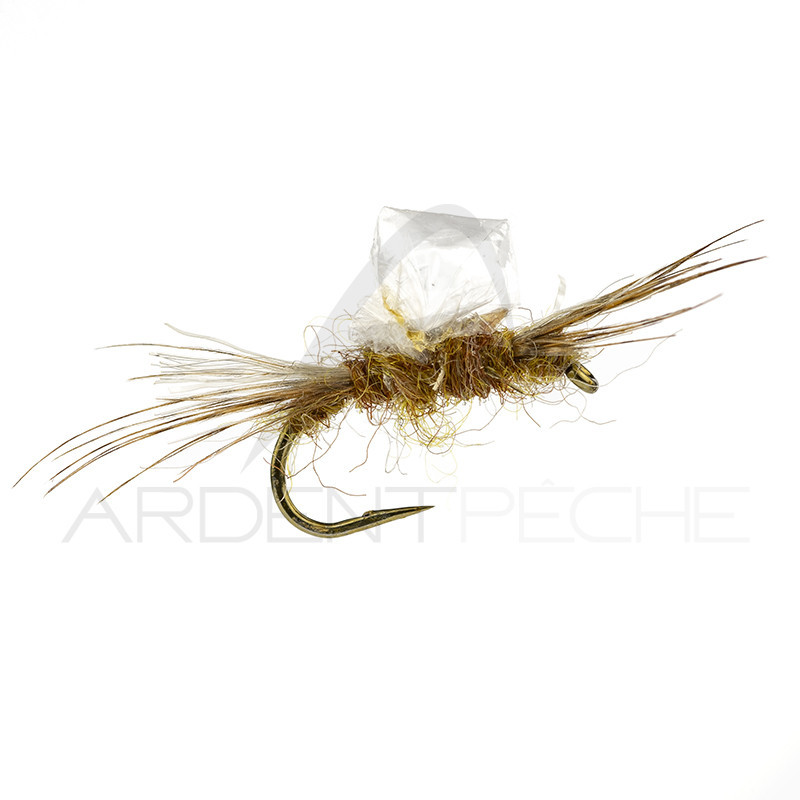 Les sub-sedge imite le stade d'un trichoptère mort dérivant à la surface.Attention, il faut éviter de pincer la bulle entre les doigts.CERQUES et ANTENNES: Plume de poitrine de colvert (beige)CORPS: Dubbing synthétique (beige)THORAX: Bulle d'air en filme plastiqueHAMECON: TMC 921