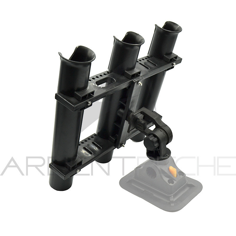 Support de cannes pour float tube pouvant accueillir 3 cannes simultanément, aussi bien spinning que casting.Il est orientable à 360° sur un plan horizontal, et a 90° sur un plan vertical.- Livrée sans la base