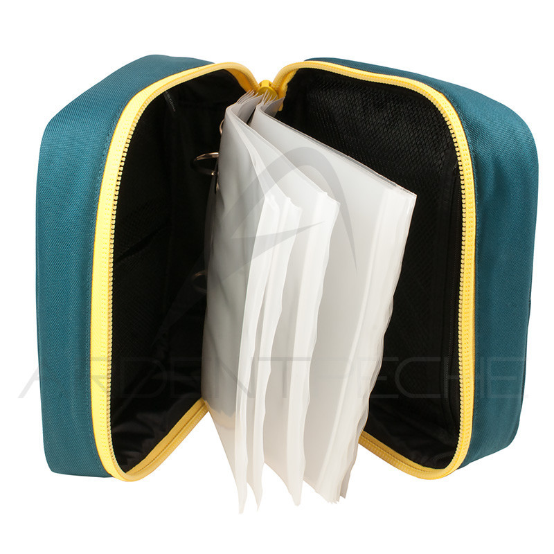 Cette trousse ingénieuse permet de ranger efficacement vos shooting heads grâce à ses pochettes zippées détachables de type classeur.