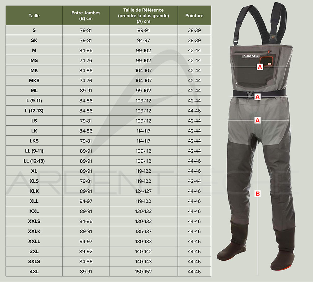 Choisissez votre taille en fonction de votre pointure de chaussures de ville. Si vous avez un doute sur la taille de waders à choisir, vous pouvez vous référer à la fiche produit.