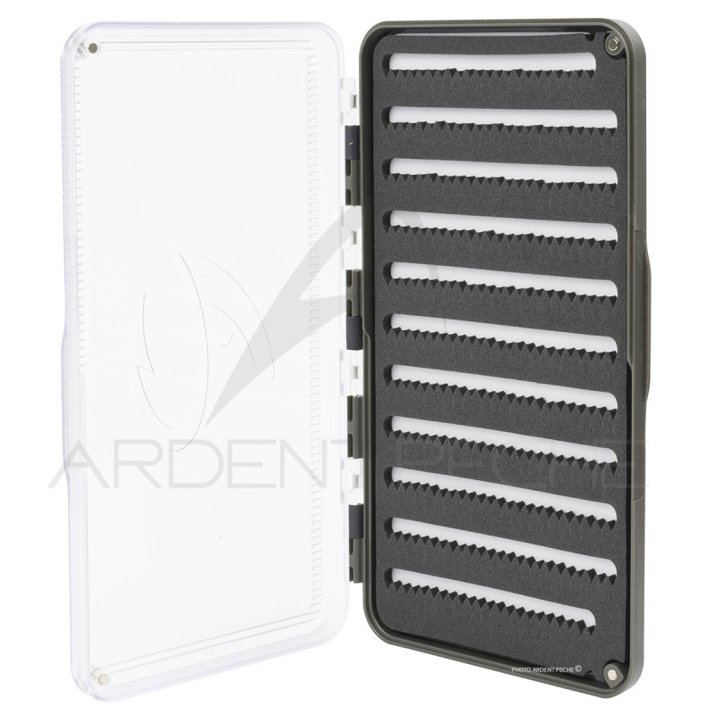 Avec de la place pour 260 mouches et une épaisseur de moins de 2 cm, elle se range facilement sur soi. Cette boîte légère en polycarbonate est dotée d’un couvercle givré de qualité supérieure qui permet de voir ce qui se trouve à l’intérieur. À l’intérieur, vous trouverez une mousse fendue de 4 mm de haute densité sur une seule face.