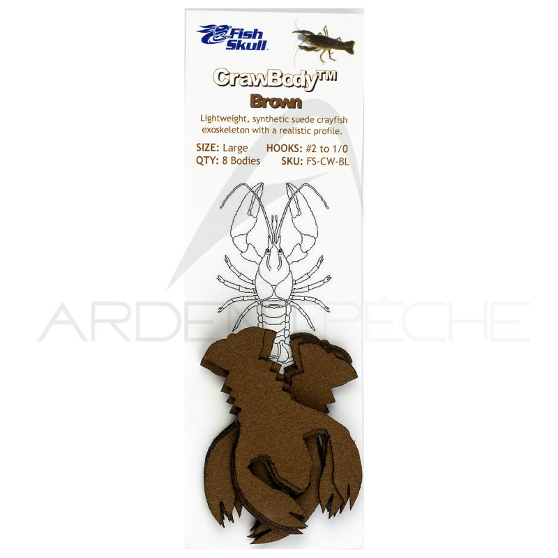 Ces exosquelettes d'écrevisses sont fabriqués en daim synthétique presque indestructible et ultraléger, qui ne peut être coupé, ne rétrécit pas et offre une texture et des mouvements réalistes lorsqu'il est mouillé. Chaque corps en daim est découpé avec précision au laser, ce qui le rend identique à 100 % et permet d'obtenir des détails très fins.- Taille médium pour hameçon 4 et 2- Taille large pour hameçon 2 et 1/0- Taille X-large pour hameçon 1 à 3/0