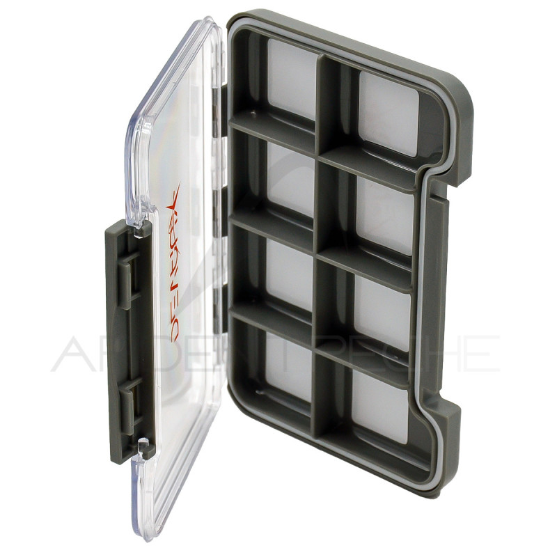 Cette série de boîtes est fabriquée en PVC haute résistance. Extra plates, elles se glissent très facilement dans les poches de votre gilet. Système de fermeture à pression avec joint d’étanchéité. Les boîtes FLATSIL sont en silicone, un matériau qui n’absorbe pas l’humidité.