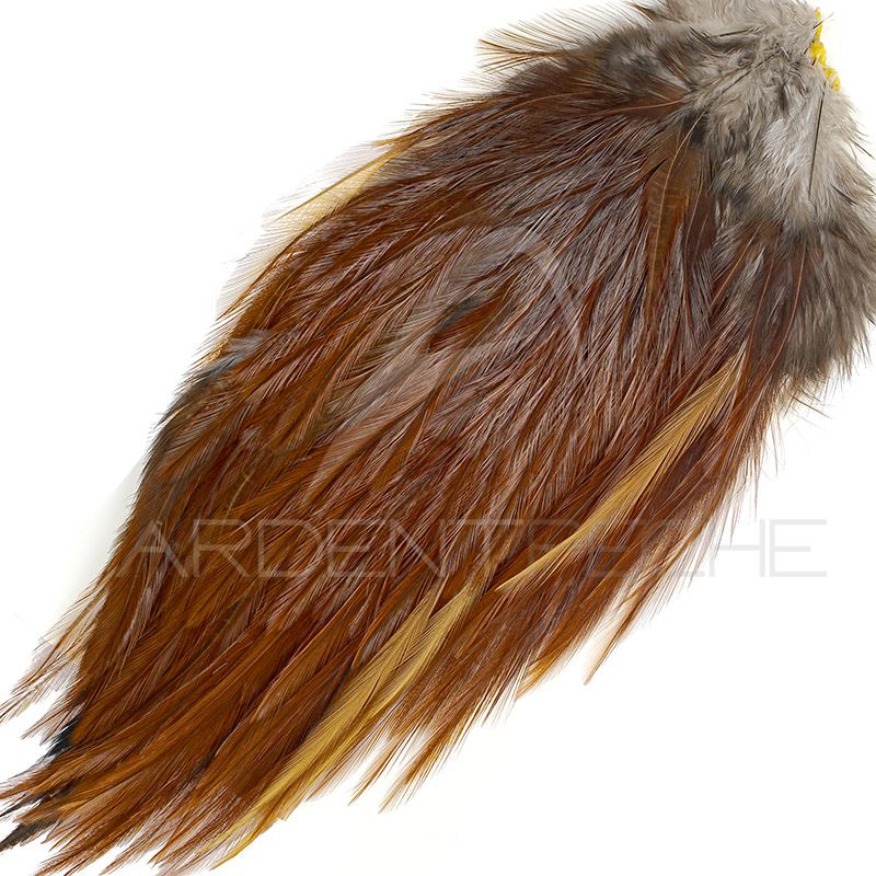 Provenant de coqs Pardo, reconnus pour la qualité de leurs fibres, il se caractérise par une excellente densité, des rachis solides et une régularité remarquable. Cette constance permet de réaliser aussi bien des montages techniques que des modèles plus classiques.
